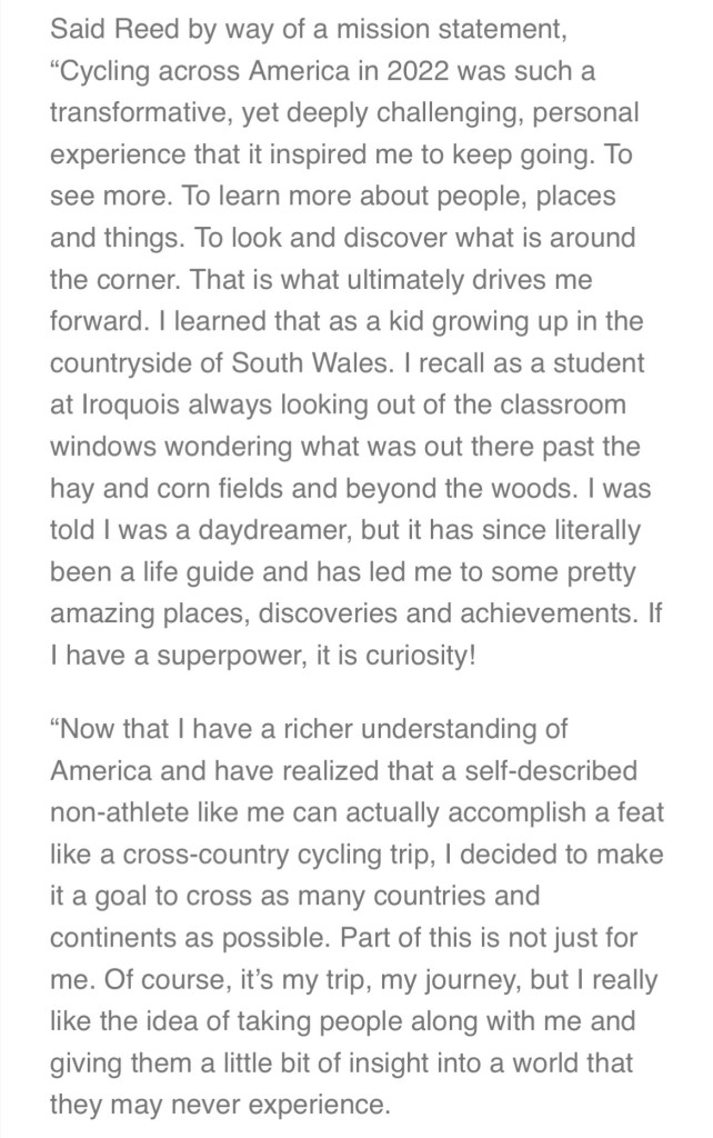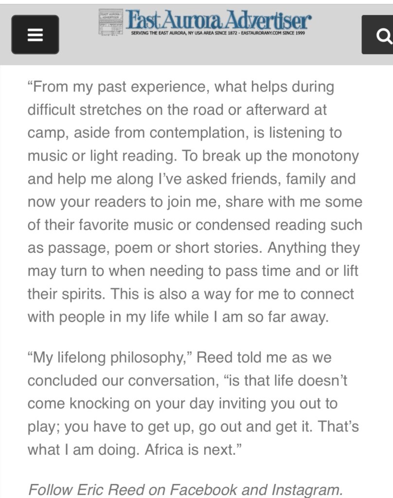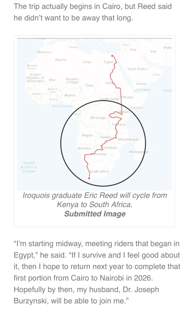 Thanks to my (childhood) hometown newspaper, East Aurora Advertiser, and Columnist Rick Ohler for breaking the news of my trip. Stay tuned—many exciting updates on my epic adventure to come! 😵💫💪🚴♂️