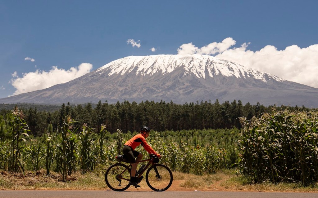 Within an hour of passing through passport control, exiting Kenya and entering Tanzania, the long ascent began. This was the day…I rode directly up to and around the base of the famous Mt. Kilimanjaro, Africas highest peak at 19,341 feet / 5,895 meters.