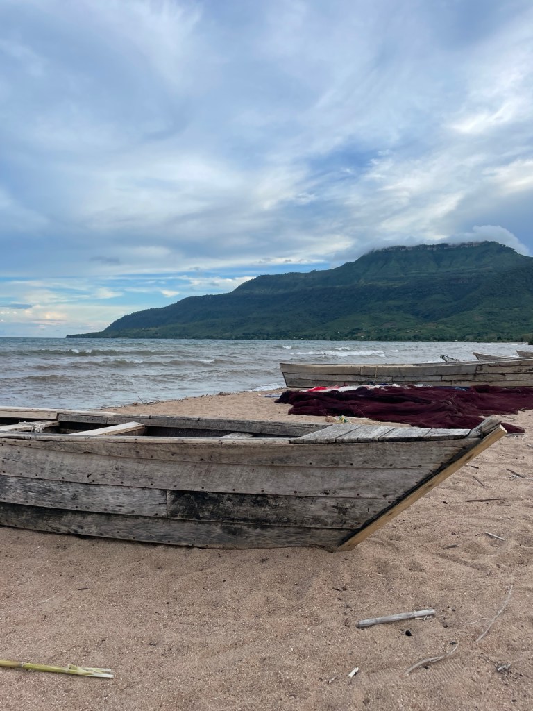 The town where I spent a few nights, Chitimba, was situated on the shores of the lake. It featured beautiful, uninhabited sandy beaches…a peaceful atmosphere. The town itself was set against the backdrop of towering mountains, with the dramatic peaks of the Livingstonia Plateau rising to the west, creating a stunning contrast between the calm lake and the rugged terrain. There was no shortage of either rain or heat—both were in full force!