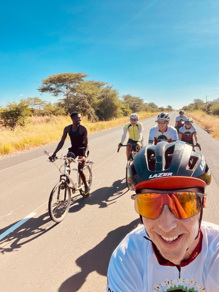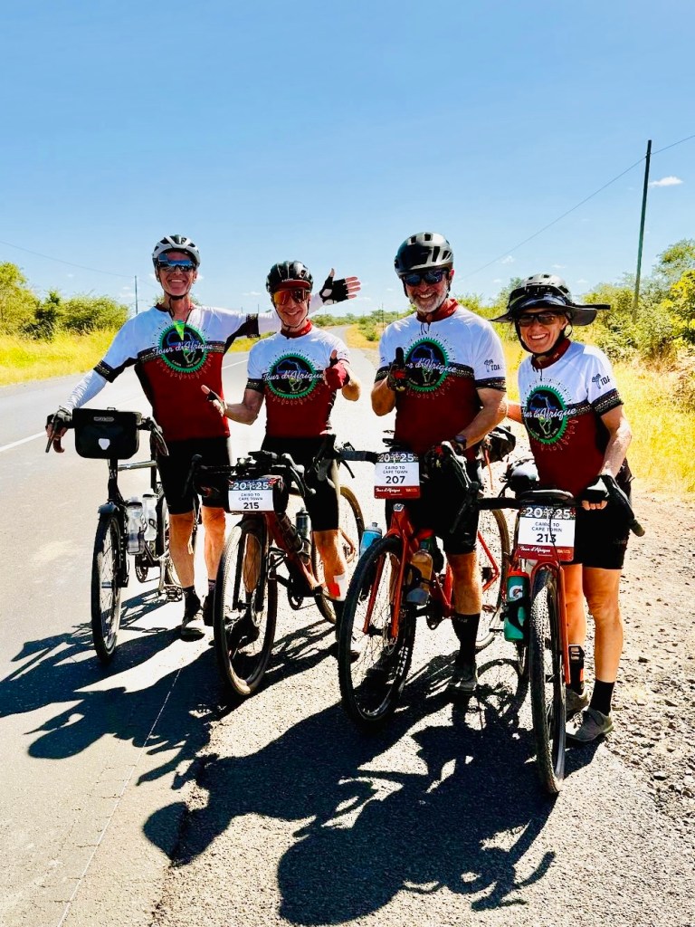 Through it all — through the beauty of the many African cultures I was immersed in, the kindness of the locals I encountered, the punishing heat, the brutal road conditions, and the endless miles of challenging riding — I met many extraordinary and inspiring fellow riders all on their own journey. Among them, there were four individuals who became my glue. Like kids on the first day of school, we became fast friends. That friendship deepened quickly as we carried each other through each day. We helped each other when one of us struggled, made each other laugh when we needed it most, often rode together, and always camped beside each other.